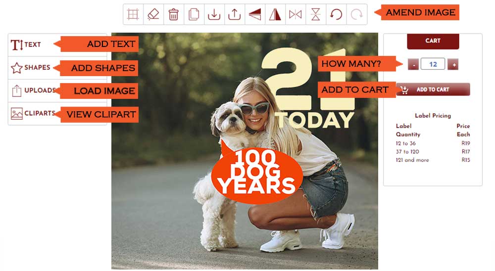 Step 3: Use the embedded menu on the right to select the desired quantity of labels to be printed and seal the deal by choosing "add to cart." Remember, your journey begins with a minimum of 12 labels per design!